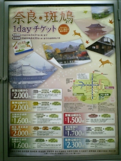 詳しくは、コチラへどうぞ~ http://www.kintetsu.co.jp/senden/Railway/Ticket/ikaruga/index.html 近畿地区の方、奈良をリサーチ済みの方は、ご存知かもしれませんが、 これから奈良方面への旅を考えてる方には、もってこいの情報だと思う。 それは・・・『奈良・斑鳩 1dayチケット』というものです。 これは、奈良観光のために、神戸・大阪・京都の鉄道会社 それぞれが発売してる電車・バスの1日乗り放題チケットです。 どの路線を使うかによって、チケットの金額が変わってくるんだけど、 1日乗り放題で、1,500円~2,300円なので、往復の交通費を考えても これを利用しない手はないと思う。 目的地に向かうまでに、ちまちまと交通費を小出しに使うのって、 結局、高くついたりするもんやしね~。 路線図を見たところ、関西圏のどの方向から攻めても乗り放題、 しかも、奈良の神社仏閣、施設の割引も受けられるという 特典も付いてるので、サービス満点です。 そして、1dayチケットの絵柄が、鹿なのが可愛い!! 記念に残しておきたくなるね。 例えば、京都駅から奈良へ向かう場合だと、 近鉄京都駅~近鉄大和西大寺駅~ 近鉄奈良駅~(必要であれば)奈良交通バス という経路がたった1,600円で乗りたい放題は、かなりお得です。 これは使えるね! ただ、目的の場所や、途中下車するかどうかによって、 普通に切符を買う方が安くつく場合もありますが、 割引特典が付いてるので、これを利用すると考えれば、 やっぱりチケットの方がお得なのかもね。 ちなみに、私が先日、「鹿男あをによしツアー」をした際は、 ほんとに奈良公園で、散策した程度なので、往復交通費は 1,600円もかからなかったけどね。 第2弾の鹿男ツアーの時は、ガッツリと奈良観光したいので、 このチケットを利用してみようと思う。 これからの時期、このチケットが爆発的に売れると予測されます。 鉄道会社の人らは、ビックリしはるで~ほんま(笑) PR